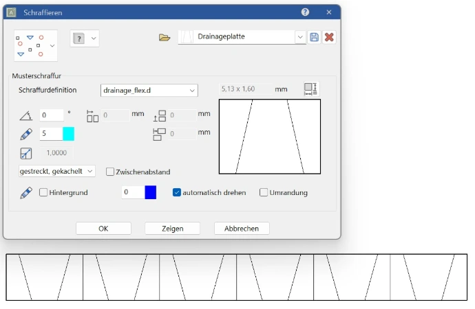 Wir zeigen Dir Schritt für Schritt das Vorgehen, um das Muster für eine neue Schraffur zu zeichnen und dieses in der Schraffur einzubinden.