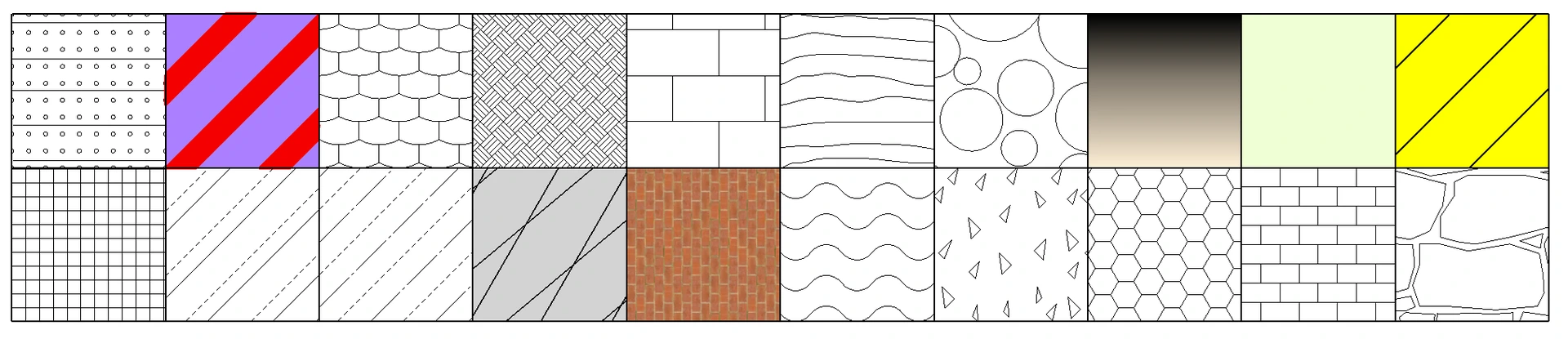 ELITECAD wird mit einer Vielzahl an verschiedenen Schraffuren ausgeliefert. Von der einfachen Linienschraffur bis zur Farbverlaufsfüllung gibt es diverse unterschiedliche Muster.